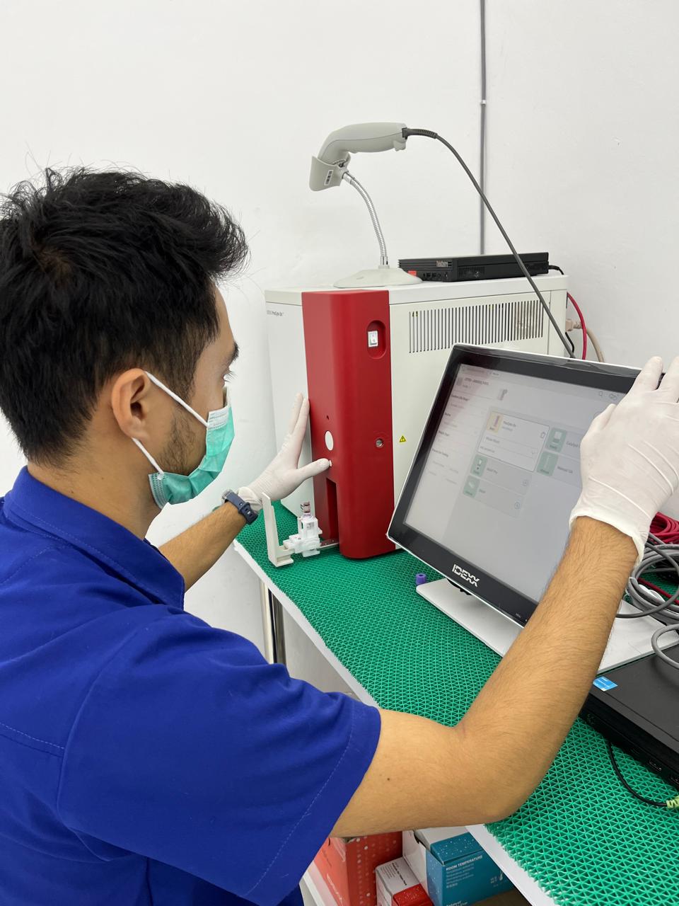 Tes laboratorium dengan teknologi analyzer modern dan hasil akurat